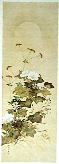 秋草と月